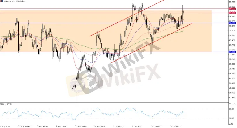 短期结构暂时偏多,反映市场对政策抗降息倾向的再评估。市场目前聚焦99.00关口,若成功突破,将确认短线美元进一步上行的动能。