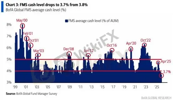 (图一、FMS基金经理人现金水位;资料来源:BofA)