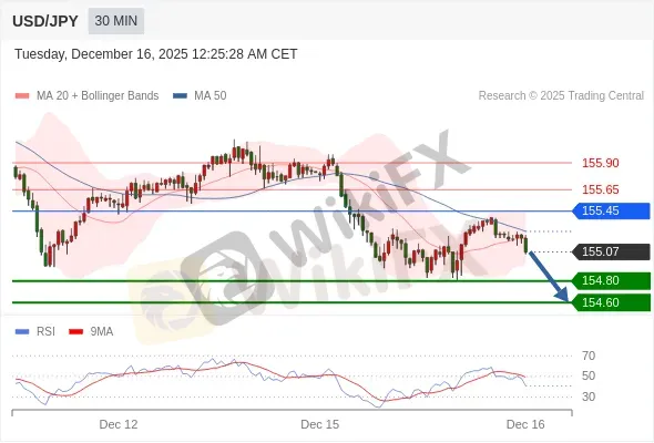 美元/日元 当日内: 短期关键阻力位在155.45。