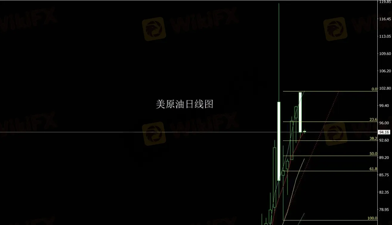 白银昨日走势与黄金类似,早盘一度回落至低位区域后出现明显反弹,随后维持震荡整理。日线形成较长下影线结构,显示下方买盘支撑较为明显。短线来看,市场仍处于震荡偏强结构中,若回调至关键支撑区域附近,可能再次吸引买盘关注。