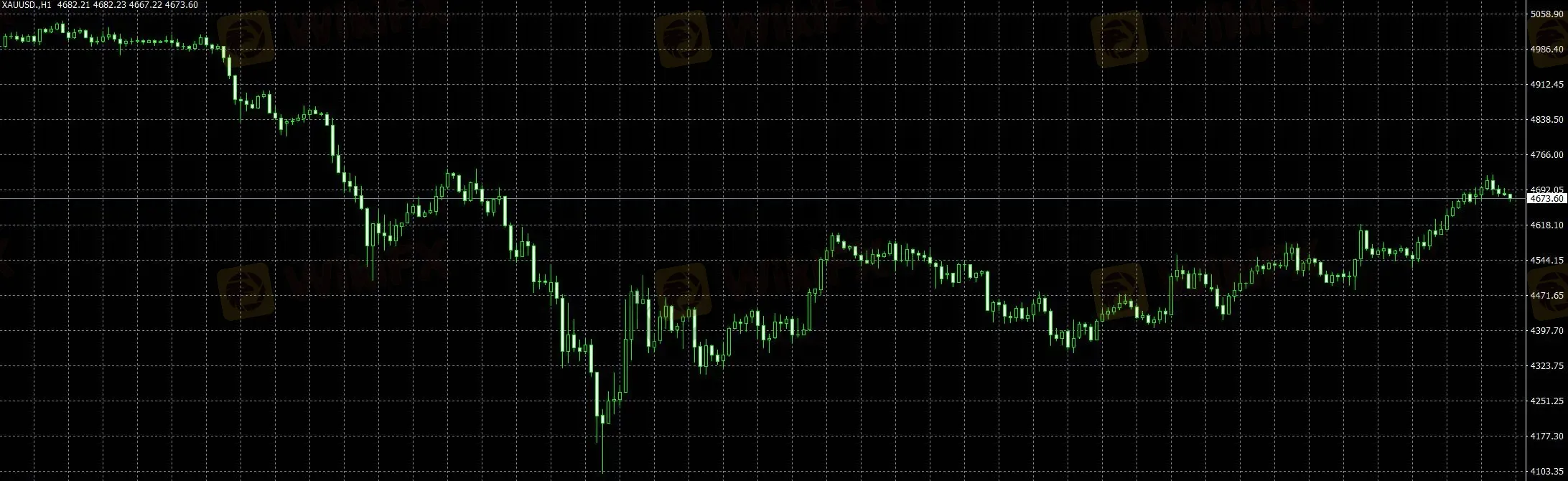 摘要:当前市场整体延续前期反弹后的高位运行节奏,黄金与白银在连续上行后开始出现明显的冲高回落迹象,短线多头动能有所减弱,行情逐步从单边修复转向高位震荡消化;原油则在前期上涨后进入横向整理阶段,价格围绕高位反复拉锯,未出现明显趋势延续信号。整体来看,三大品种均从“修复推进阶段”过渡到“高位再平衡阶段”,多空分歧明显加剧,短线更偏向节奏博弈而非趋势延续。一、黄金(XAU/USD)1小时周期从1小时结构来看,