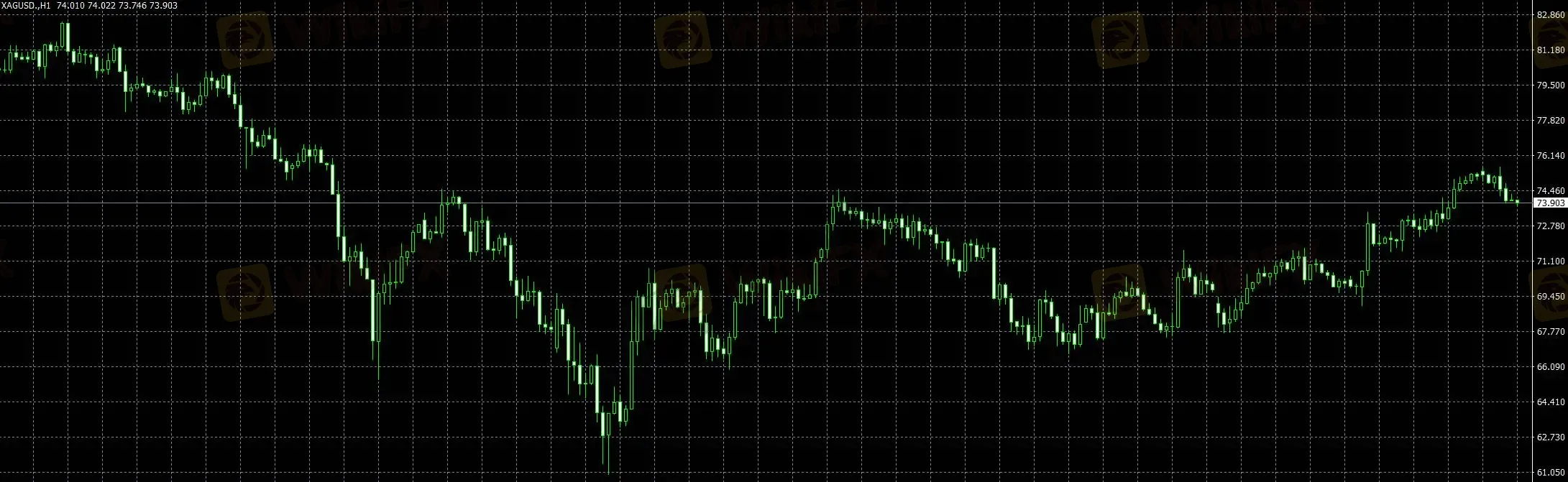 白银1小时结构同样处于反弹后的高位区域,但相比黄金,其波动幅度更大,冲高回落更为明显。当前价格虽仍维持在相对高位,但上涨连续性不足,且每次触及高位后都伴随明显回撤,说明上方抛压较为集中。整体来看,白银仍处于修复后的震荡区间内,尚未形成稳定的趋势延续结构。