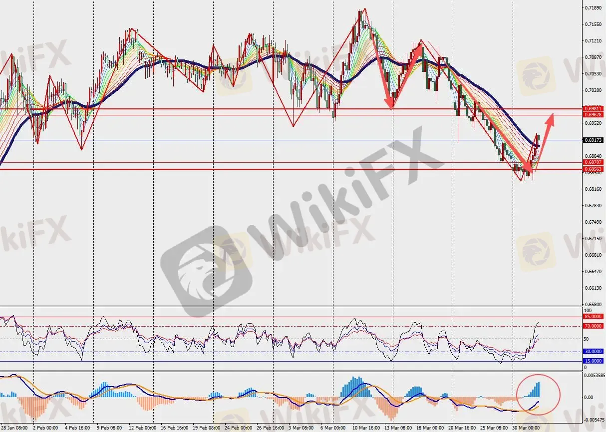 第一阻力位:0.6960 第一支撑位:0.6870
