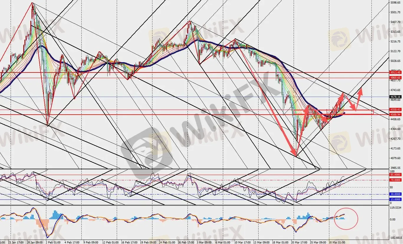 黄金H4级别持续上涨,MACD双线和量能柱在零轴上方缩量。关于部分央行可能抛售黄金以支撑本国货币的担忧不太可能成为现实。海湾国家更有可能通过清算美国国债来进行干预,因为它们通常实行美元挂钩汇率制。