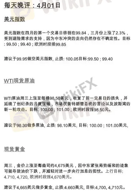 BCR每日晚评及分析 - 2026年4月1日