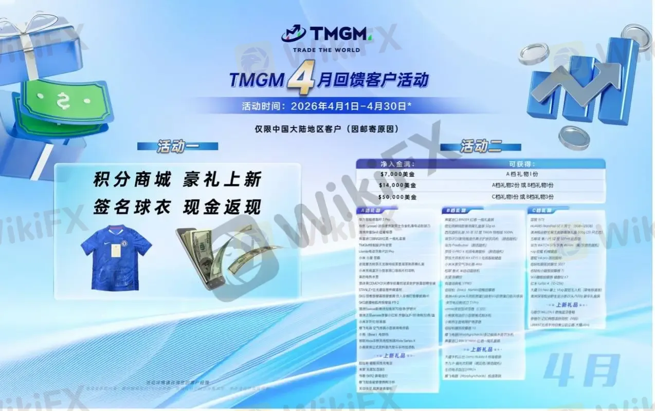 TMGM 四月入金送礼活动详情
