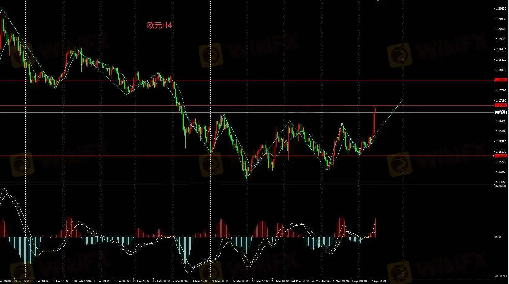 欧元H4价格在1.15企稳后快速冲高至1.17;短期多头走势,中期需进一步等待确认。
