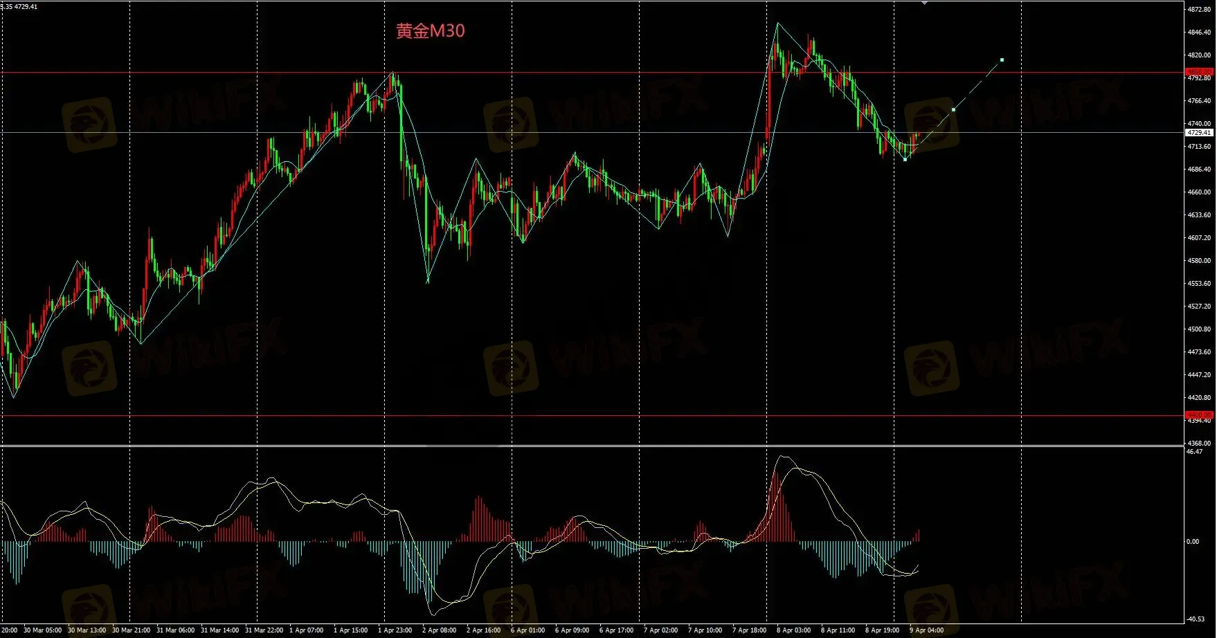 M30图表金价日内逢低买入操作,重点关注金价在4800变动,若如不能上破该压力位或不能上破后不能站稳则短线多头暂时离场观望。