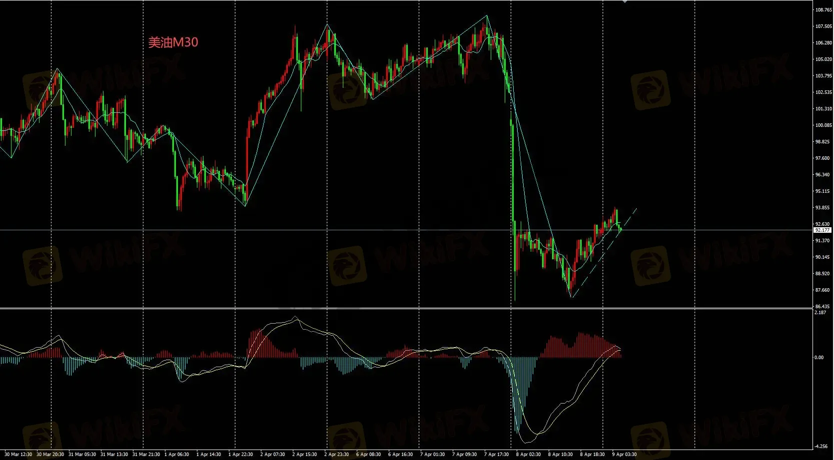 美油M30油价大幅度下挫,短期看空,日内逢高卖出操作,目标88。