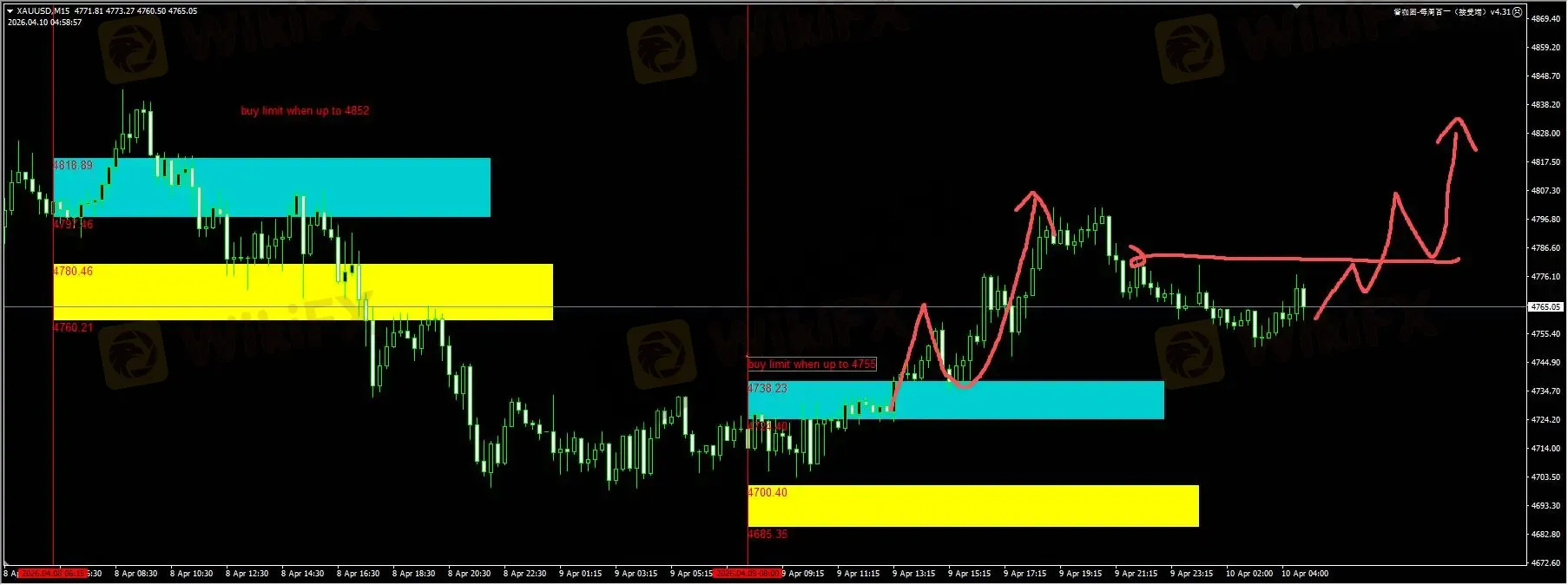 黄金:昨天我们插件提醒的蓝色区域突破之后,触及4755才可以挂回踩买入。结果价格触及4759之后,一波回踩确认,直接拉升到4800附近,收获接近5倍盈亏比。日内我们继续期待波段反弹的延续,等待突破冲击隔夜高点之后,再挂回踩买入。详细位置请咨询插件。