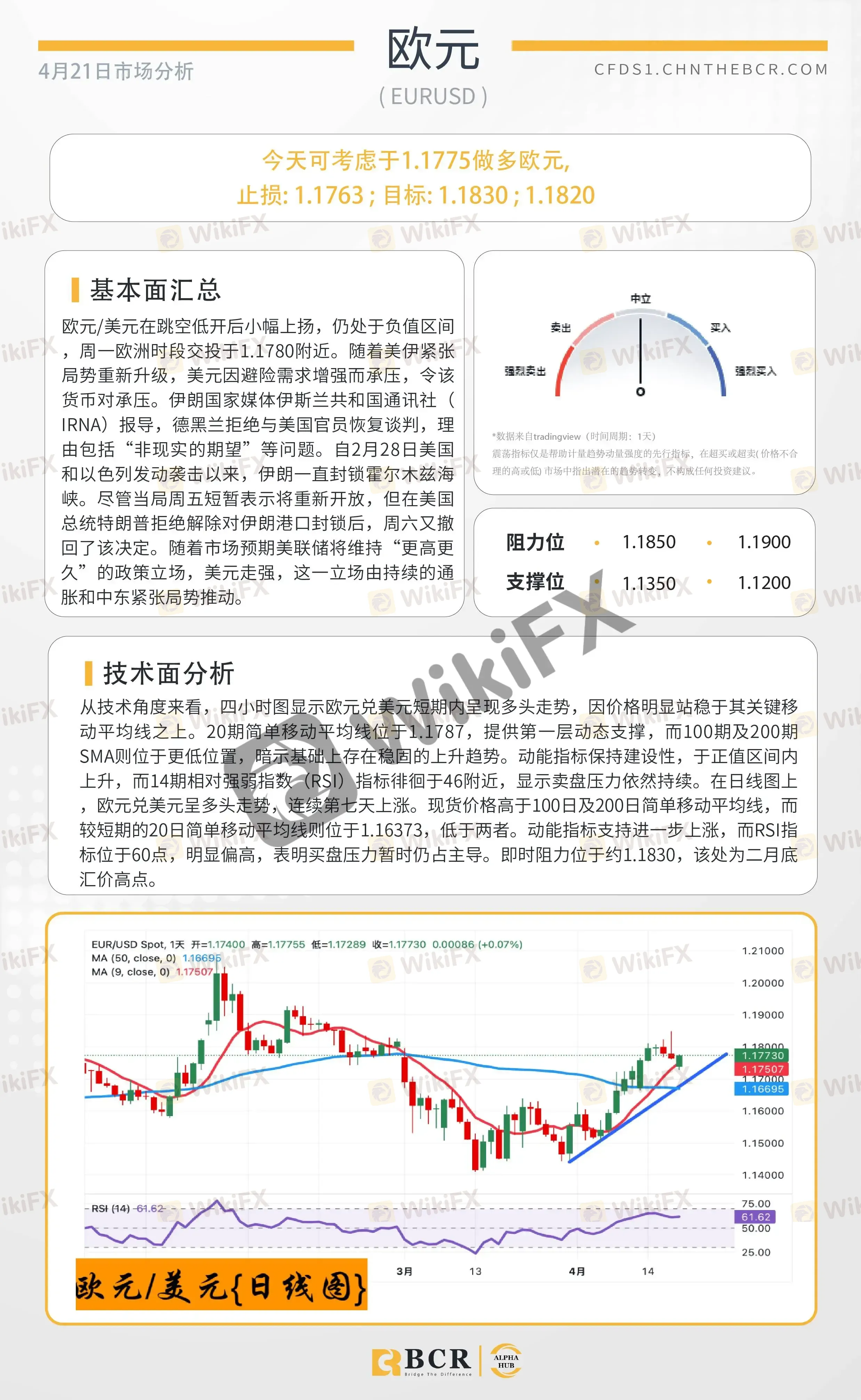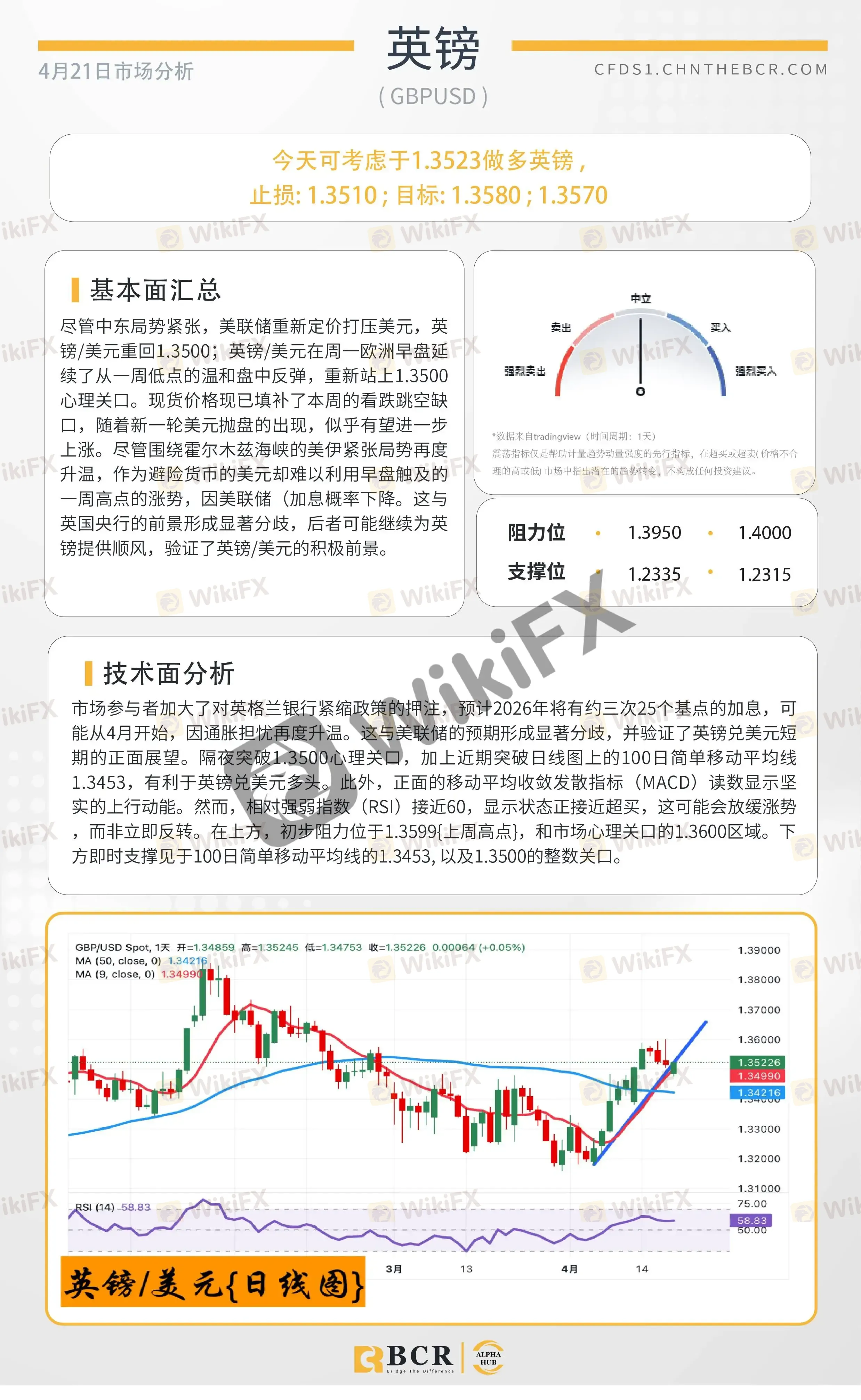 BCR每日早评及分析 - 2026年4月21日