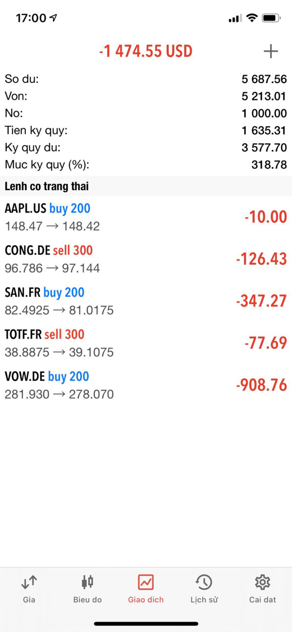 1 bạn tư vấn tên Huy Thức nói ở Đà Nẵng đưa mình vào sàn, mình nạp vào 5K, nạp xong Thức bảo có chuyên gia tên Khoa hướng dẫn đánh, Khoa hướng dẫn mình vào rất nhiều lệnh và chỉ trong 5 ngày mình cháy sạch. Tôi bảo Thức phải có trách nhiệm nhưng cậu ta nói tôi phải vào thêm tiền để gỡ, nhưng tôi chợt nhận ra bị lừa và ko vào nữa. Mọi người nên tránh xa cái sàn vớ vẩn này!
