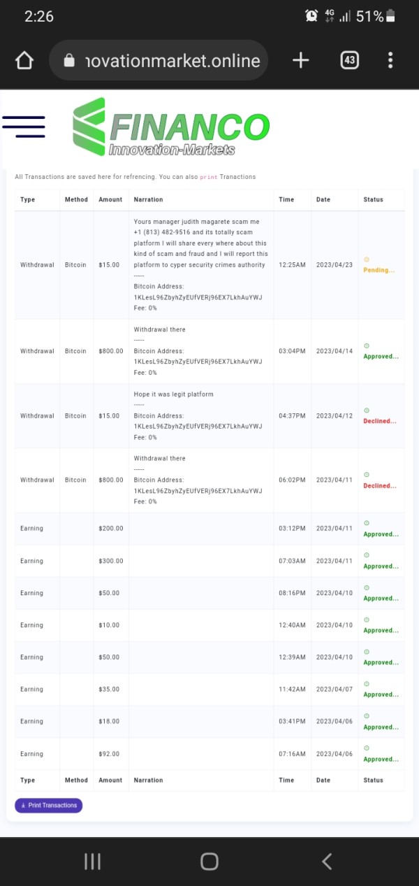 If anyone is in his group amd she have link to join to financo-innovationmarket.online kindly i share here in public so i can alert everyone else.