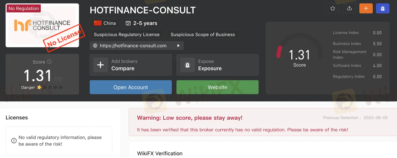 HOTFINANCE-CONSULT其運作缺乏有效監管,給投資者帶來潛在風險。在考慮與該經紀人進行任何財務參與時,務必謹慎行事。