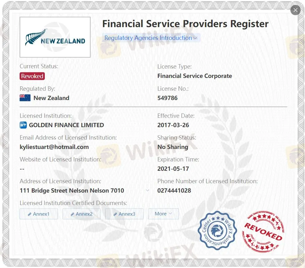 | 許可機構 | GOLDEN FINANCE LIMITED |