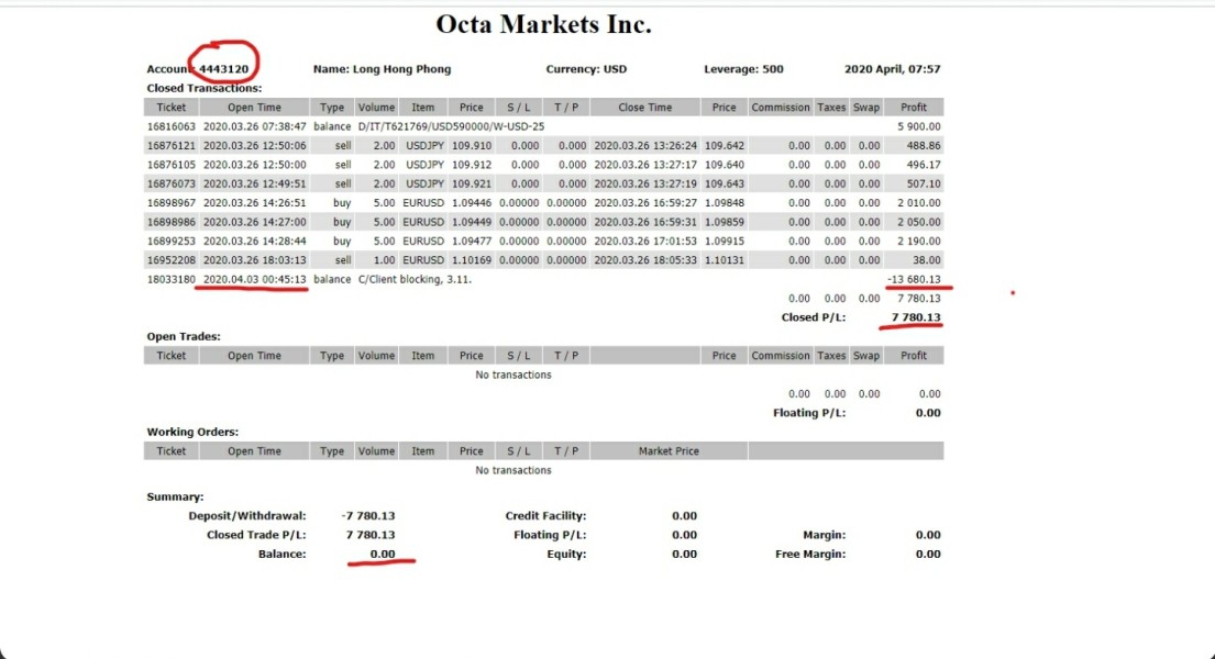 First of all, hello to the PFA traders, the following I will detail the octafx scam, Because I am Vietnamese and not good at English, everything I use is translated by Google. my evidence picture is also in Vietnamese so i will explain briefly and strongly the key points so quite a long time please read and everyone please sympathize with me, On March 27,Octafx blocked my account, deleted all my delivery history and all my customers did not have email