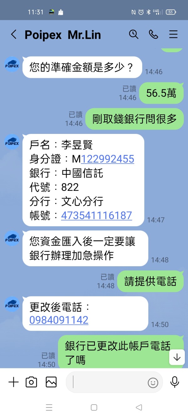 出金不入帳70天了,消失的劉德盛突然出現,要再一次匯款,出金凍結是因為錢被總部林經理A走了,
