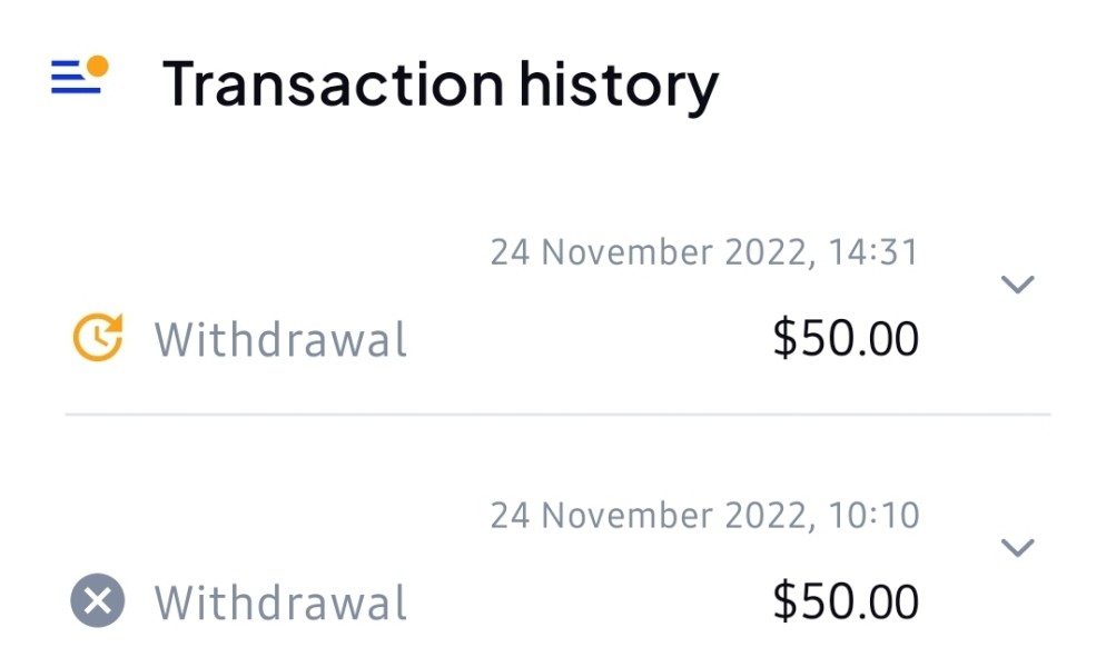 withdrewal not success