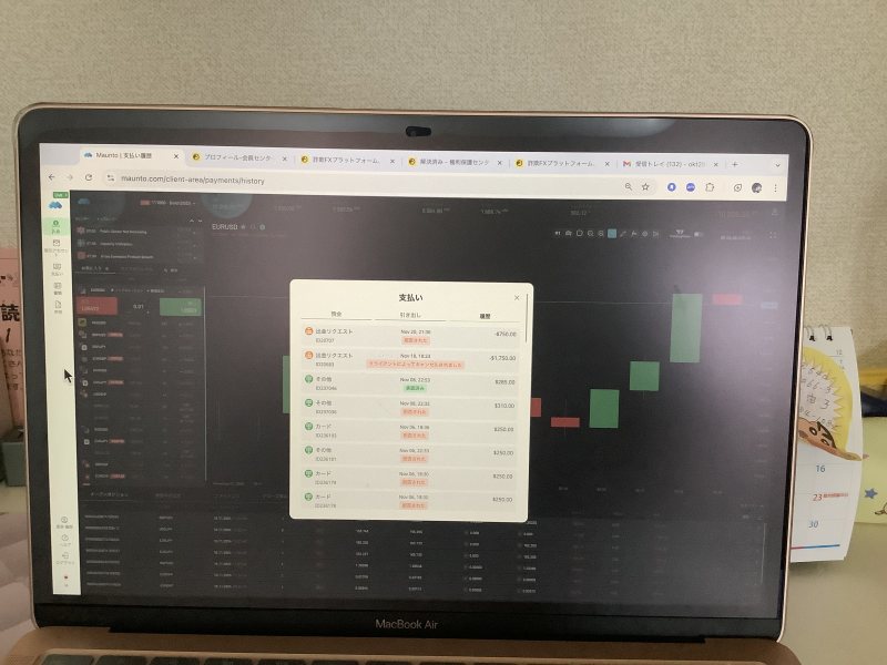 私がいくら入れたのか? どれくらいしているのか? 私が始めたのは、今年の7月からです。 入口は、SmartNewsからです。 海外投資に興味を持っている時に、始めました。最初のプロと呼ばれる人は、ベンジャミンさんでした。 最初の入金は、250ドルと501ドルをクレジットカードで入れています。 最初は、そこそこ稼げていましたが。途中から出金も向こうが決める様になりました。 また、途中から現金送金でビットフライヤーを使って5000ドルと2001ドル入金しています。 全て、写真で取っているので証明できます。 また、念の為電話番号も残しています。 メールアドレスも知っています。 また、11月9日にクレジットカードで250ドル✖️7の1750ドルと現金の送金で281ドル入れています。 今、現在残高12260、60ドルあるはずですが。 なぜか、マイナスです。 こちらに入れてしまった分のお金を早く取り戻したいです。 今のプロの人は、アビさんと言う人です。 二人分のZOOMコードも取っていますので、提供出来ます。 このままでは、確実にある残高を0にされそうで怖いです。