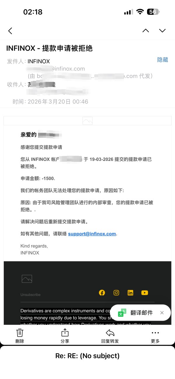 我在2026.03.20INFINOX 提款被拒绝,无法出金,账号被限制。
