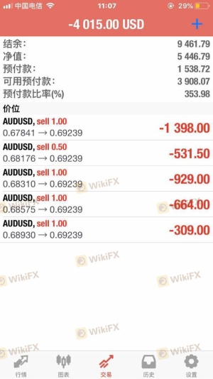 開始每天打電話說帶單盈利,入金后盈小虧大,半個多月5000美金賬戶接近爆倉。然后說市場沒按照預計的走,所以導連虧。和開始入金時說的相反。提醒其他人不要再上當。