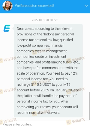 我是泰國MT賬戶:1585979。我想全額出金,金額是47132.00USDT,但交易商多次收取費用,第一次是10%的杠桿費用,金額為3942USDT。之后他們說我必須支付12%的個人所得稅,金額5655.84USDT。后來他們又要求我支付10%的轉賬費用,金額為4793.85USDT。我告訴他們要從我的資金中扣除。 他們說不能,必須要充值支付。