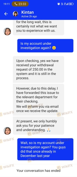 這個月(2024 年 2 月)我獲利了 6,668.98 美元(固定匯率馬幣)。當我請求提款時,它在應用程式上顯示正在等待處理。然而,幾個小時過去了,我聯繫了聊天代理,詢問為什麼還沒有批准?因為之前的交易時間都沒有超過3小時。他們有超過 20 個聊天代理(假名字和假個人資料圖片),當我問為什麼我的提款不被批准時,他們都說同樣的話。 「我們已將此案件轉發給相關團隊」「我們會盡快回覆您,請放心」。他們沒有對我的詢問給出任何相關答案。 (附截圖)我覺得他們凍結了我的提款,因為我獲利了。同樣的情況發生在 12 月,我賺了 11,411 美元的利潤。他們說正在調查,但他們沒有提供任何我的提款經常被拒絕的原因。 (附截圖) 只有當我遭受損失時,他們才會幾乎立即批准交易(例如一月)(附截圖) 現在我有 283 美元的提款待處理,但沒有解釋為什麼會發生。他們在沒有任何解釋的情況下凍結了我的資金。