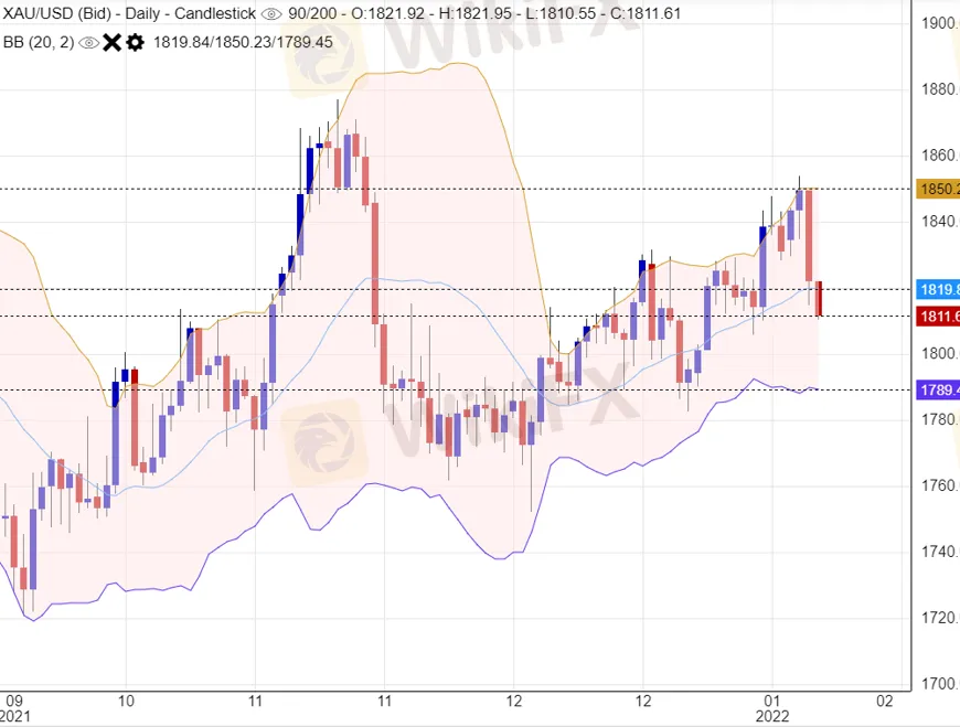 周三(1月26日),美聯儲聯邦公開市場委員會宣布將關鍵利率維持在零水平,幷在隨後的聲明稱將很快開始上調目標利率區間,以壓制持續高企的通脹,美聯儲暗示會在3月開始加息幷結束購買債卷計劃,隨後開啓縮表行動。金價昨日曾一度高見1850美元,但在此水平遇上較大阻力,幷在美聯儲公布利率决議後大幅下跌,創一周新低,收盤報1819美元。