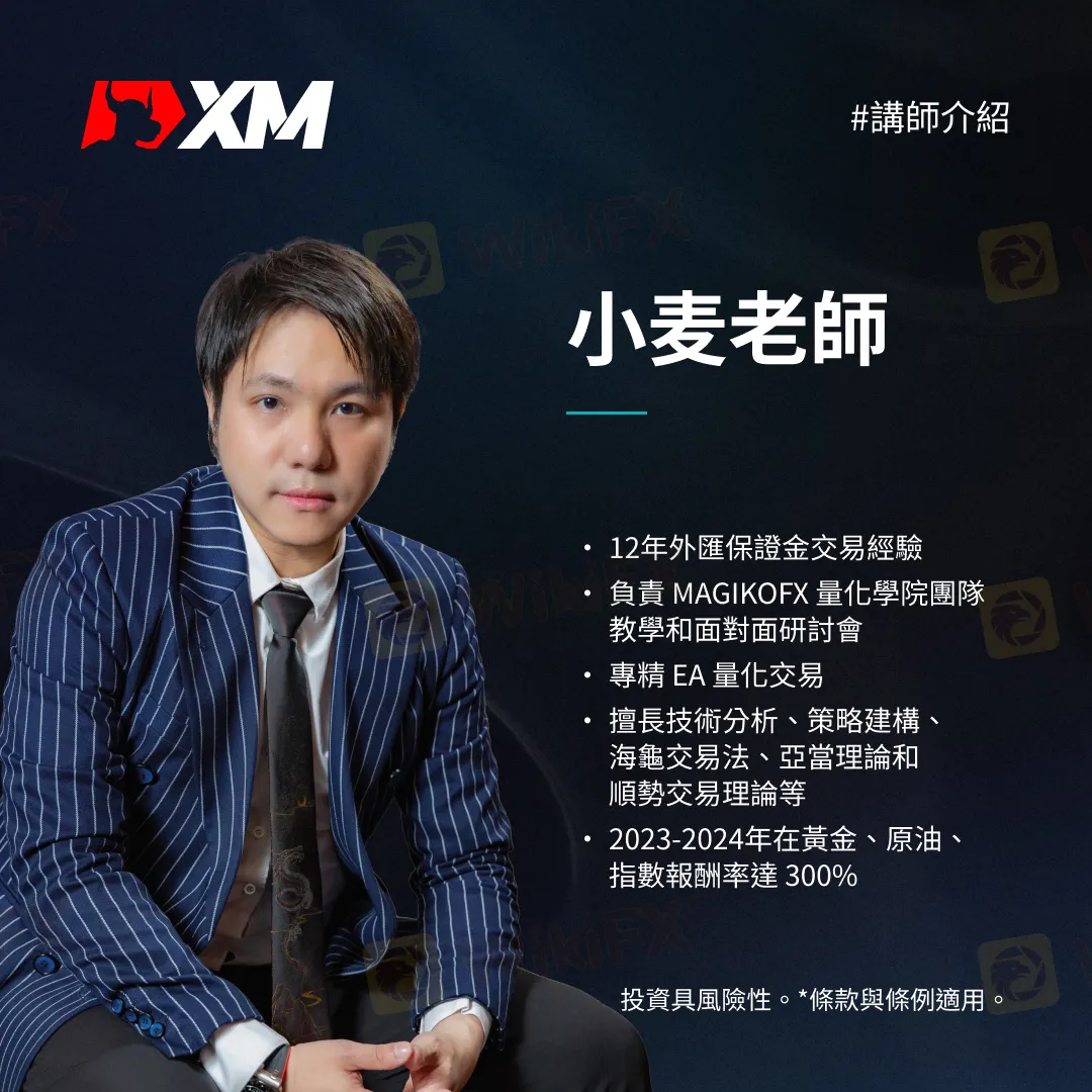 2023 – 2024年間,小麥老師在黃金、原油和指數以量化交易獲得約 300% 的投資報酬率,展現其卓越的交易能力和成績。 他的加入將為 XM 團隊注入更多活力,為學員提供更高品質的服務和教育資源。